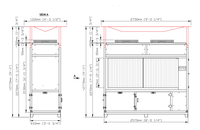 | Height | 2,270 mm, 2,770 mm with air distribution module (exact height can be adjusted) |
