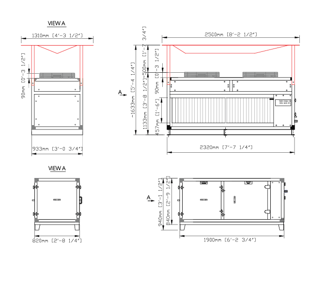 Unidirectional hoods For units positioned on the side of growing facilities. This side canopy will direct the unit’s airflow in one or two directions depending on the needs of the facility. Sizes: Height 850 mm (33.5″), Depth 910 mm (36″), Width 910 mm (36″)